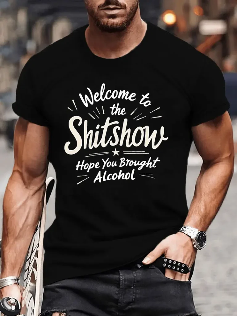 Men’s Casual Round Neck T-shirt, Printed Pattern Men’s Top, Men’s Gift