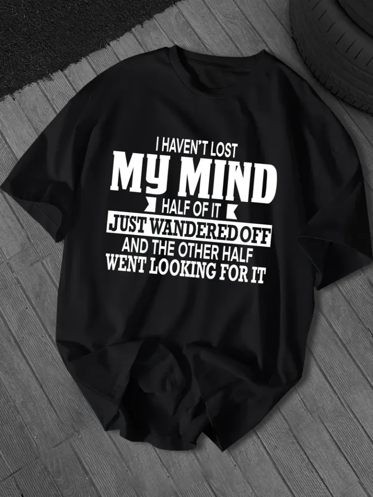 Plus Size Men’s Humorous “I Haven’t Lost My Mind” Slogan Print Casual Short Sleeve T-Shirt