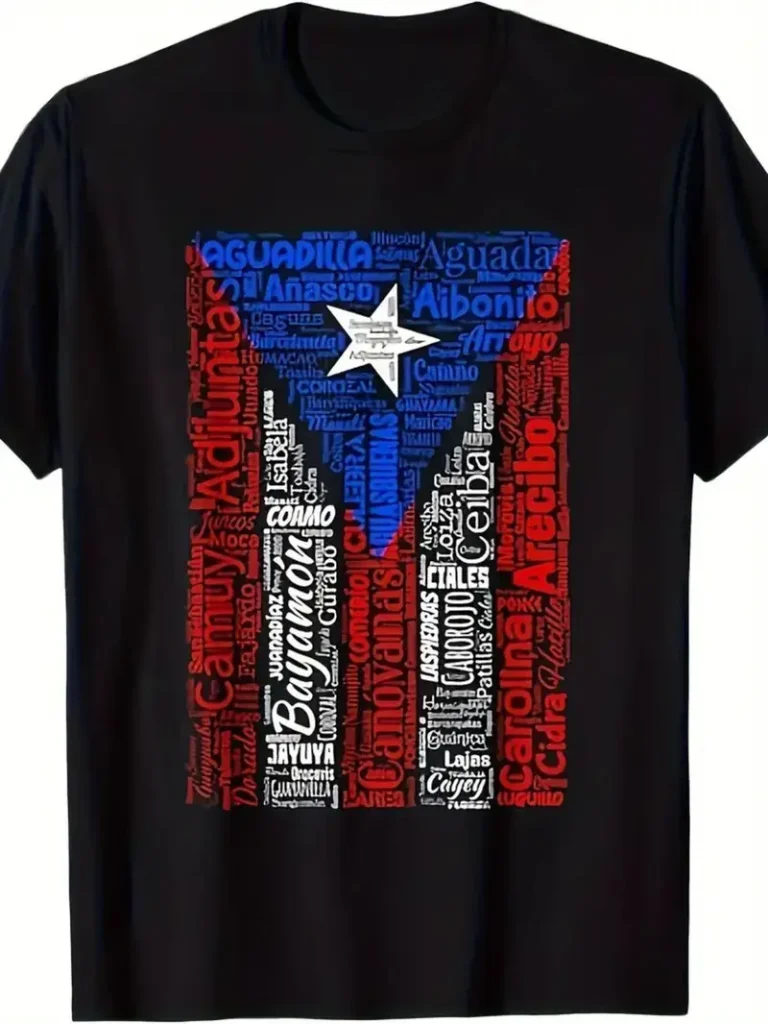 Men’s 100% cotton 220g -1 pcs, 100% Cotton, Puerto Rico Flag Pattern Letter Print T-Shirt