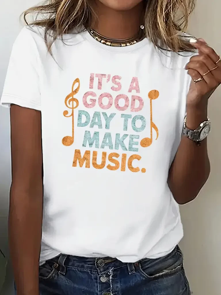 Women’S Colorful Music Note & Butterfly Print T-Shirt